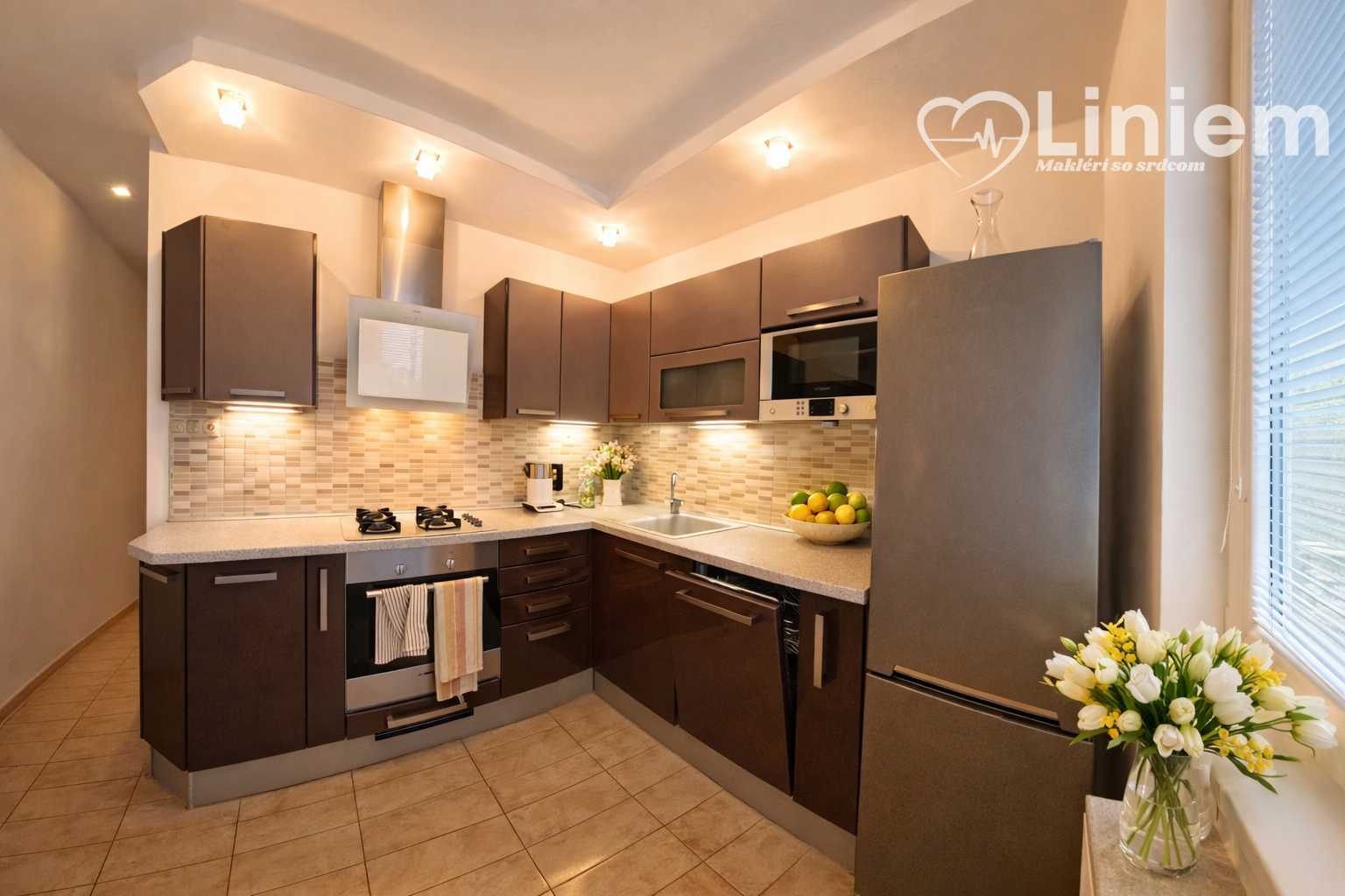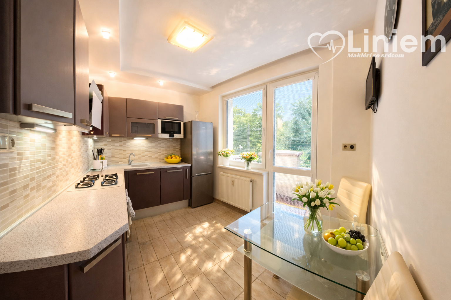 Kuchyňa je riešená na mieru značkou Decodom so zabudovanými spotrebičmi. Byt je klimatizovaný a má riešené prúdenie vzduchu v byte ,takže je tam príjemne počas každého ročného obdobia.