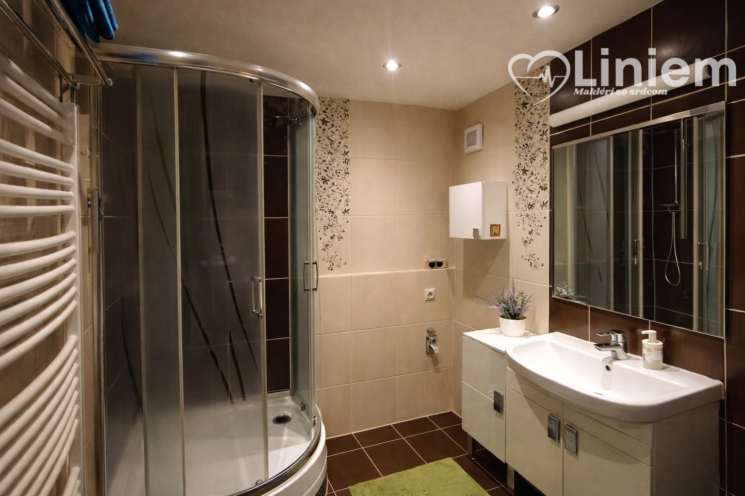 Kuchyňa je vybavená umývačkou riadu (lebo umývanie riadu je prežitok) a byt má kúpeľňu so sprchovacím kútom + samostatné WC – praktické riešenie pre každodenný komfort.